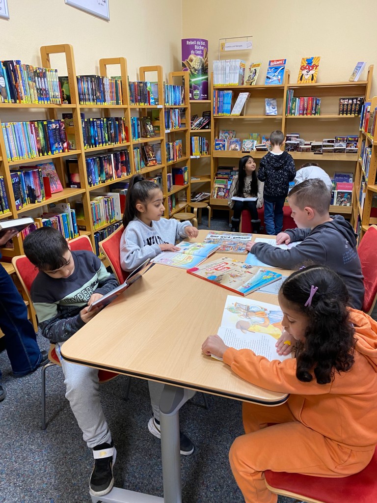 Die Schule und die Bücherei haben sich zusammen ein Programm für die jeweiligen Jahrgangstufen der Schule überlegt, welches Aktionen und Erlebnisse rund um das Thema „Buch“ aufgreifen soll.