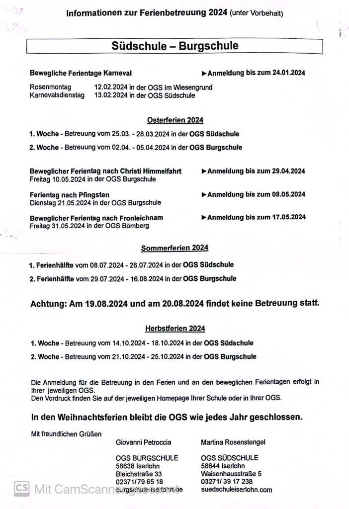 - Bedarfsabfrage vor den Ferien mit verbindlicher Anmeldung